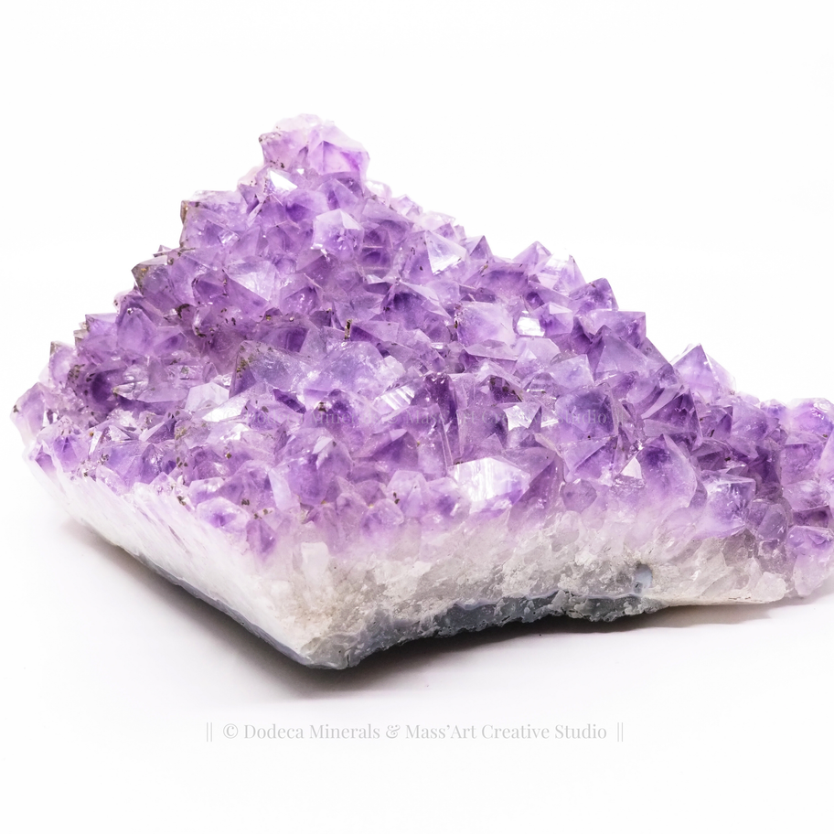 To maintain the energy and brilliance of your amethyst, clean it regularly with lukewarm water and a soft cloth. Avoid prolonged exposure to sunlight. To recharge its energies, place it in moonlight or near a quartz geode.